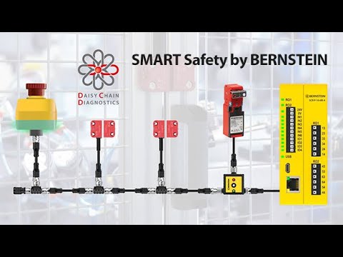 BERNSTEIN liefert die Systemlösung zur vollständigen Absicherung von Maschinen und Anlagen und bietet damit das Komplettpaket einer intelligenten elektronischen Sicherheitstechnik. Zu diesem SMART Safety System zählen beispielsweise der berührungslose RFID Sicherheitssensor SRF, der elektronische Not-Halt SEU sowie die Sicherheitsauswertungen SCR P und SCR DI. Besonderen Wert bei der Entwicklung legte BERNSTEIN auf das patentierte Diagnosesystem DCD, welches umfangreiche Daten eines jeden angeschlossenen Gerätes sammelt und sie zentral und flexibel im Sinne einer intelligenten Produktion verfügbar macht.